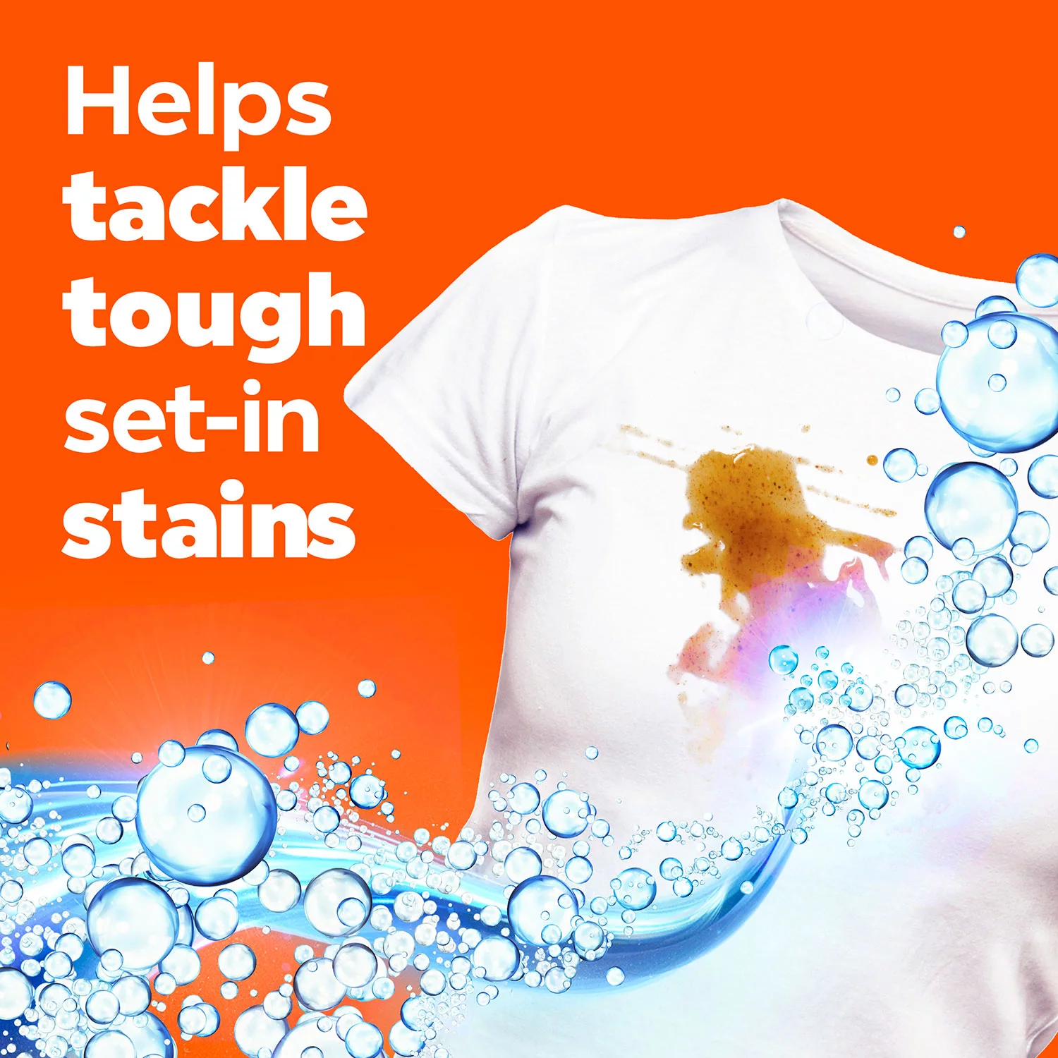 How can something so small be effective against such old and set-in stains? The answer is simple: because it’s Tide. The toughest stains can easily scare some people off, they might even make people throw out their clothes, thinking they can’t be saved. Tide PODS + Ultra Oxi Liquid Detergent Pacs were specifically developed for these situations: to remove the toughest stains. With built-in pre-treaters, Tide PODS Ultra OXI can unleash its Tide power against these stains, and make your day so much easier by taking these heavy-duty chores off your shoulder. Tough stains are not too tough for Tide; the proof is in the results.